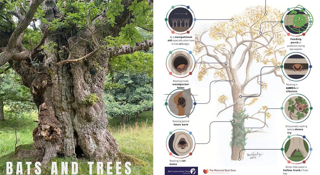 - Conservation of bats: Increasing standing deadwood in woodlands, removal of invasive non-native species such as Rhododendron enabling native species to thrive boosting insect populations, planting hedgerows, boosting dung beetle populations through good cattle diet.
