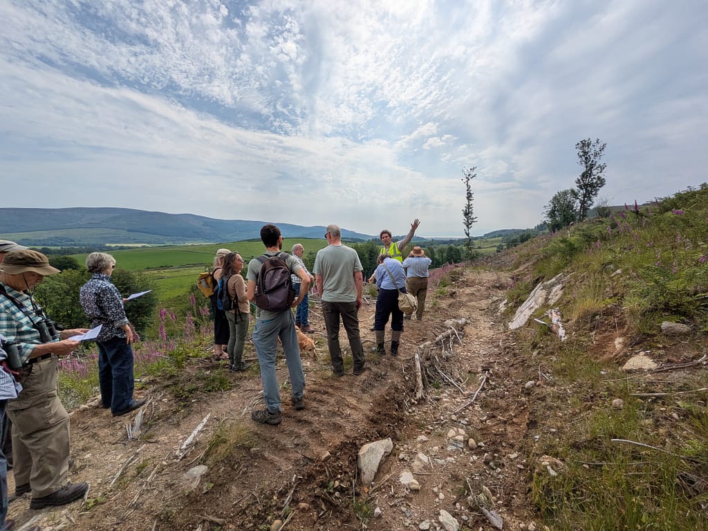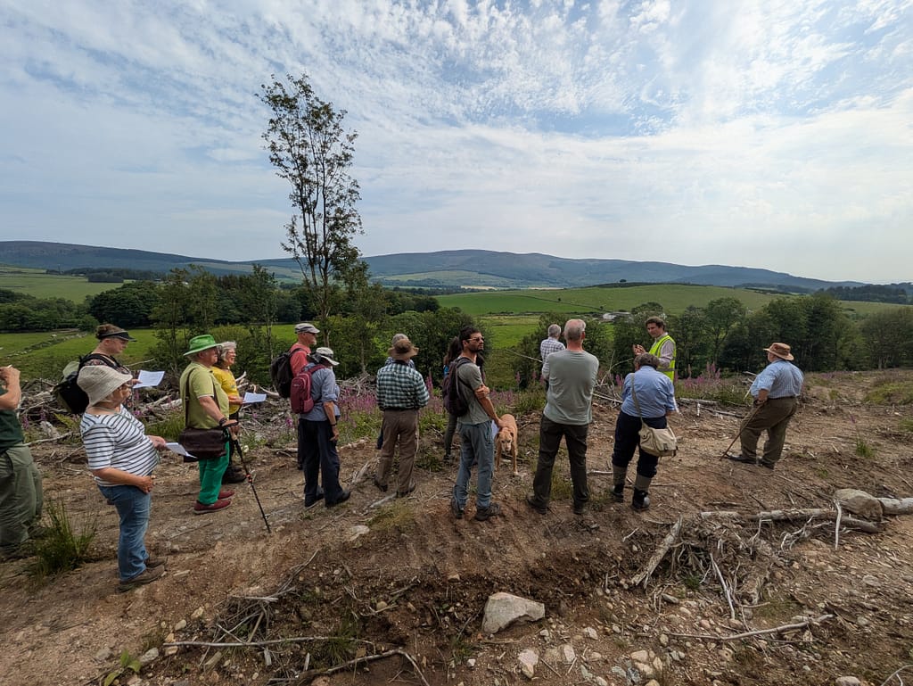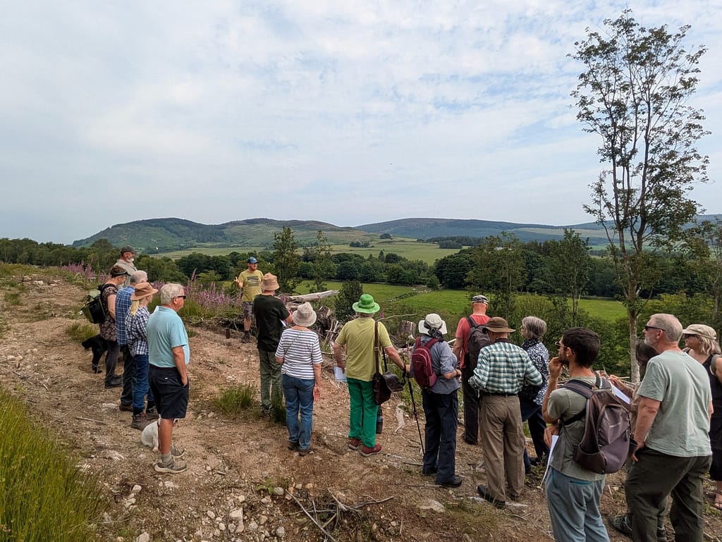 D&G Woodlands were excited to host their first ever members’ event at the Bennel Woodland Laboratory, just outside Dalbeattie. Around 35 members attended the ‘Solstice Celebration’, travelling in from all corners of the region including from Stranraer, Glentrool, Lockerbie and Moffat. The morning visit, which ran from 10am-12pm, opened with a talk from D&G Woodlands Manager, McNabb Laurie. A short walk uphill followed, with a stop to take in the views.